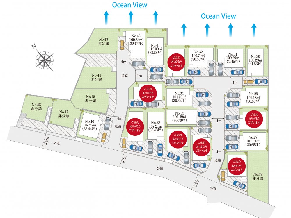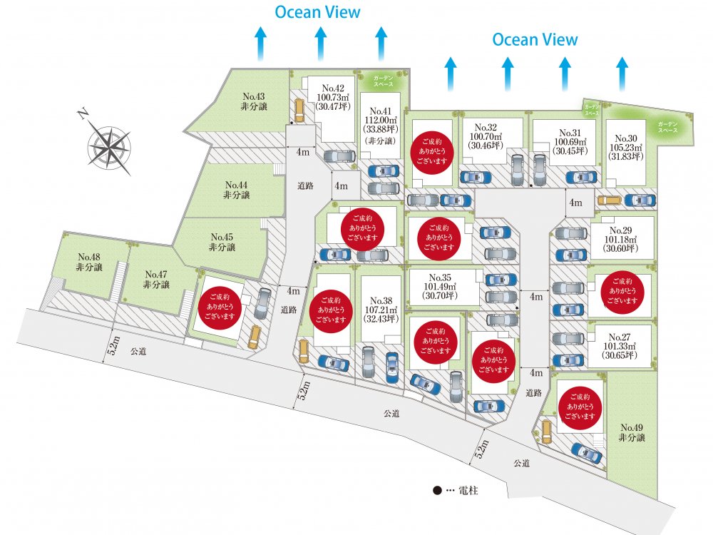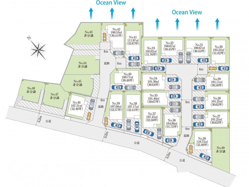 | 販売棟数 | 全24棟 今回販売18棟 | 土地面積 | 100.69㎡〜112.00㎡ |