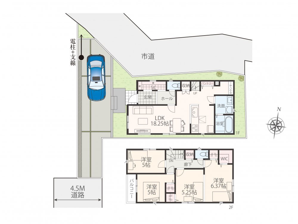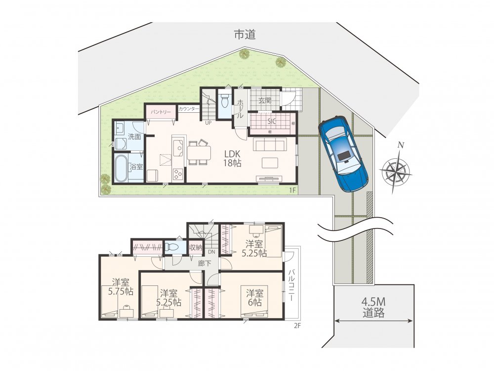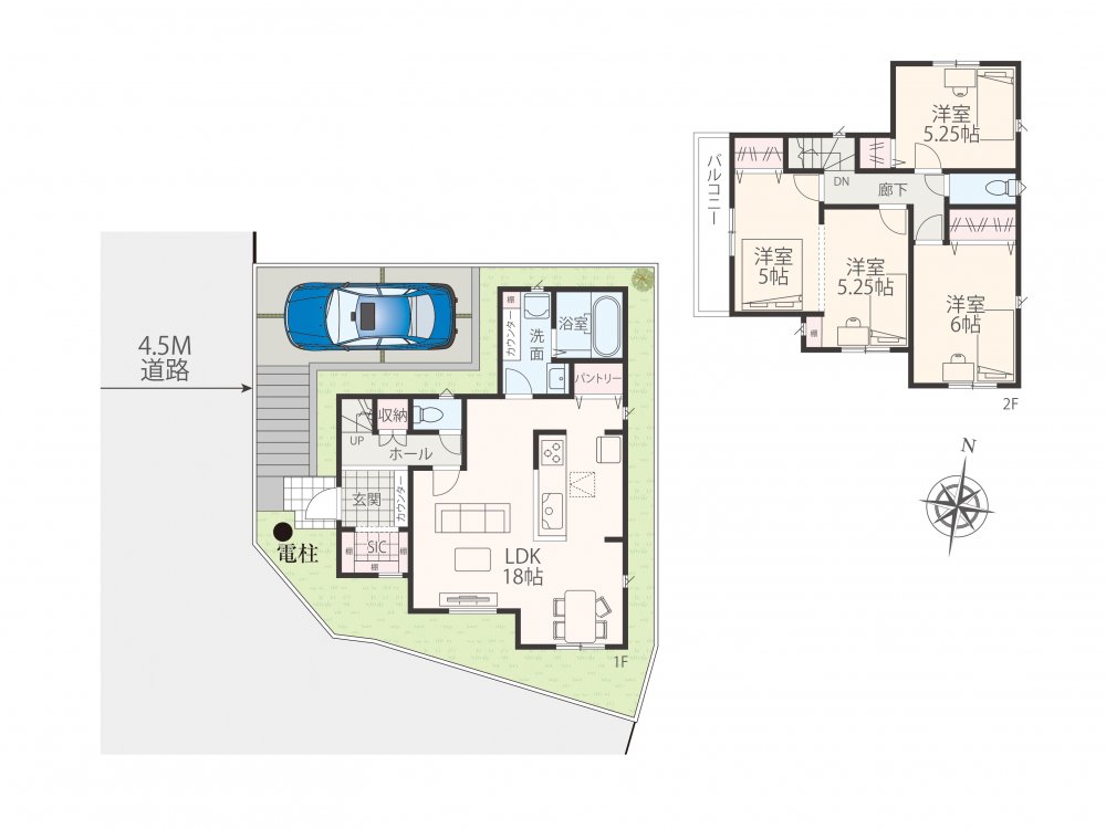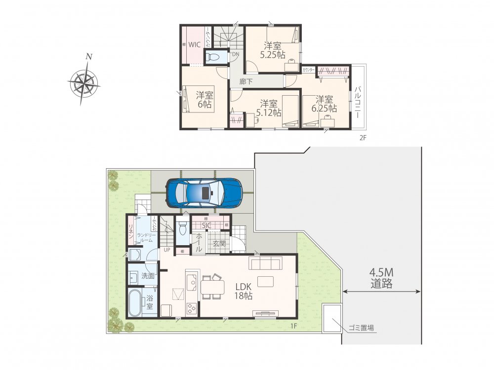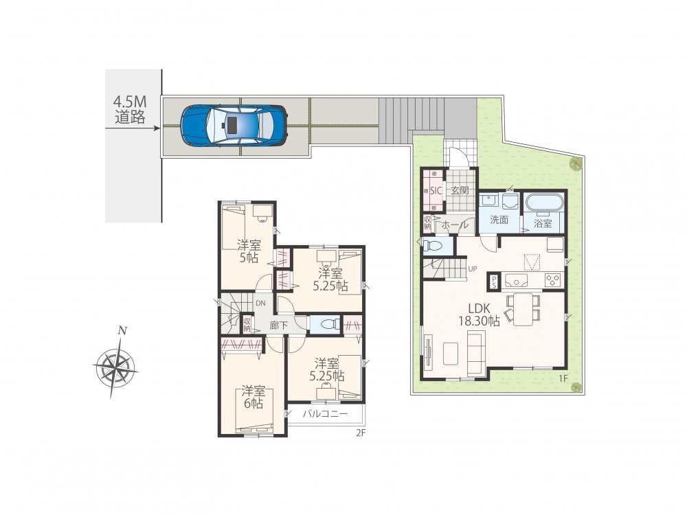 | 建物面積 | 89.91㎡〜98.41㎡ | 間取 | 3LDK〜4LDK ( LDK18.30帖 洋室6帖 洋室5.25帖 洋室5.25帖 洋室5帖 ) |