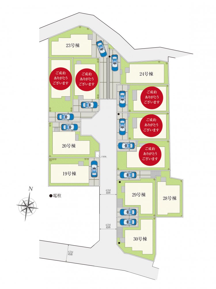 | 販売棟数 | 全12棟 今回販売7棟 | 土地面積 | 100.00㎡〜123.07㎡ |